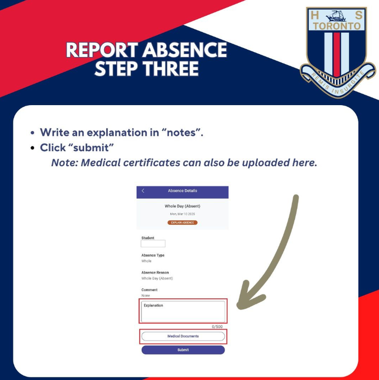 Please Note: If writing a note, please include the student's first and last name, the dates absent, their Year group, and the reason for the absence.
